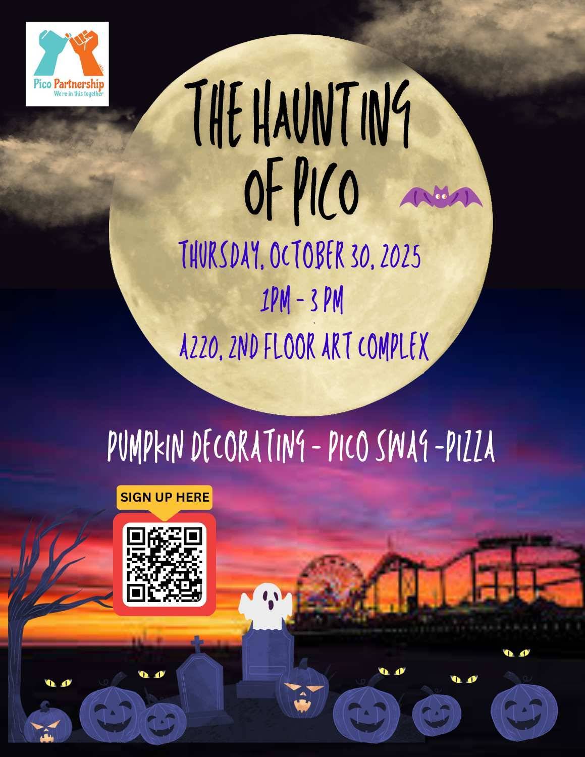 Join us for some spooky fun. Decorate a pumpkin, have some pizza, participate in a raffle and receive a choice of Pico Partnership hoodie, t-shirt, cap, or beanie.